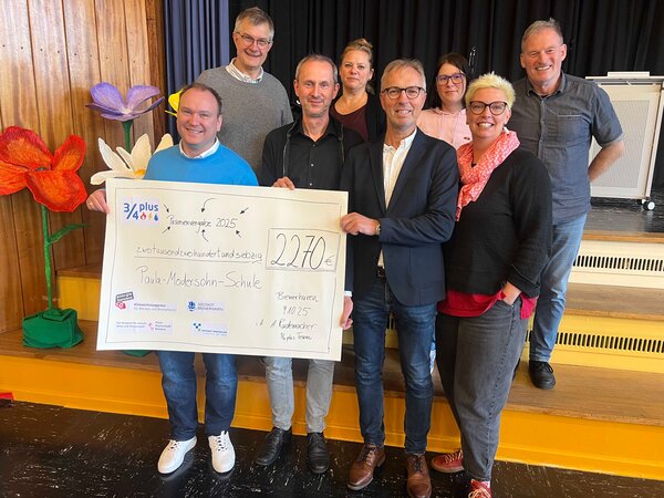 Am 9. Oktober 2025 zeigte sich erneut, wie viel Begeisterung und Engagement in unseren Schulen steckt: Engagiert, kreativ und voller Energie präsentierten sich die teilnehmenden Schulen bei der diesjährigen Prämienvergabe des Projekts 3/4plus Bremerhaven. Stellvertretend für alle beteiligten Schulen nahm Herr Achatz von der Paula-Modersohn-Schule den Prämienscheck entgegen.